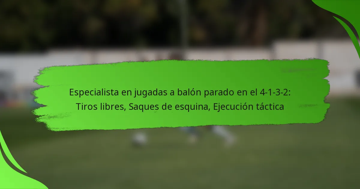 Un especialista en jugadas a balón parado es un jugador designado para ejecutar tiros libres y córners, aprovechando sus habilidades técnicas para realizar jugadas precisas y estratégicas. En la formación 4-1-3-2, donde el control del mediocampo es vital, estos especialistas mejoran las opciones ofensivas del equipo durante las interrupciones en el juego.